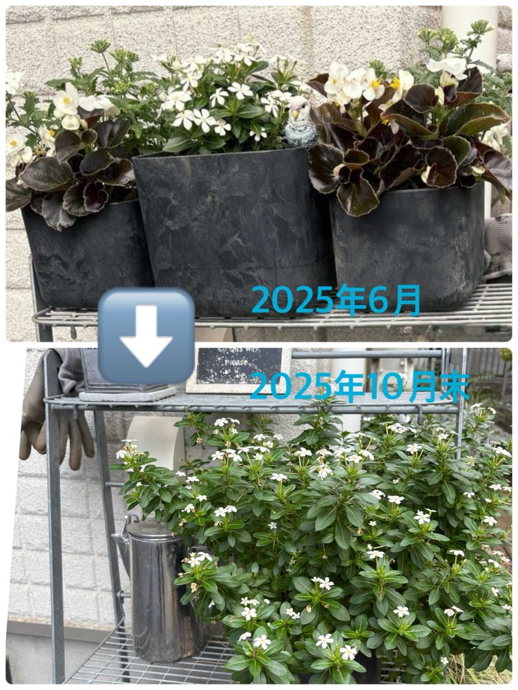 ちなみに、一緒に並べた、ペンタス、ペチュニアは暑さと蒸れでダメでした。