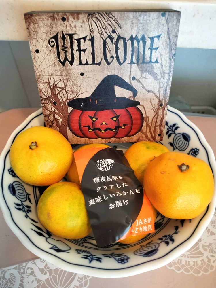 3枚目〜やっと美味しくなってきた🍊こちらは佐賀産 お気に入りハロウィン🎃ボードとパチリ🤳✨