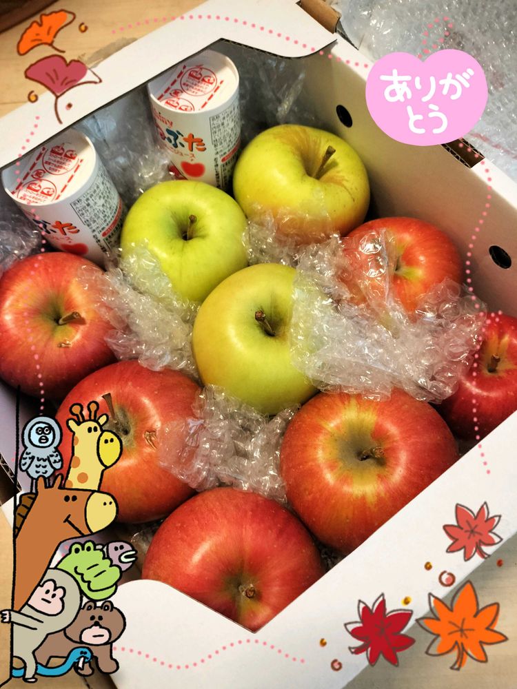 5枚目〜青森の花友さんから美味しいりんご🍏🍎が届きましたヾ(˙❥˙)ノ💕💕💕果物大好きだからマンモスうれぴー🤭🤭🤭