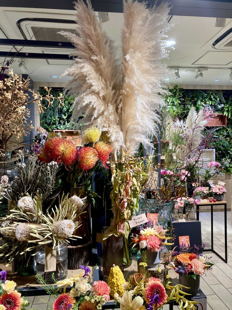 電車の待ち時間に目の保養をしている東京ミッドタウン日比谷内の花屋さん。