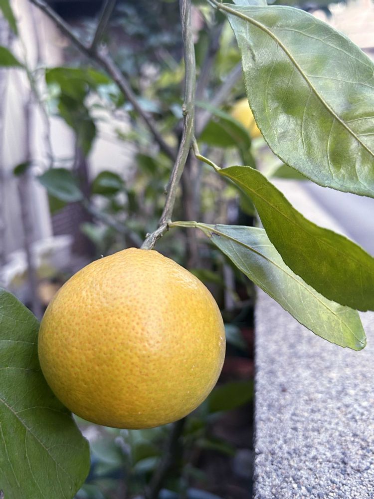 「温習みかん🍊」が2つ 実を付けました。おじさん「こんな寒い所で、良く成ったわ」と、笑ってみえました。本当、珍しいよね😳