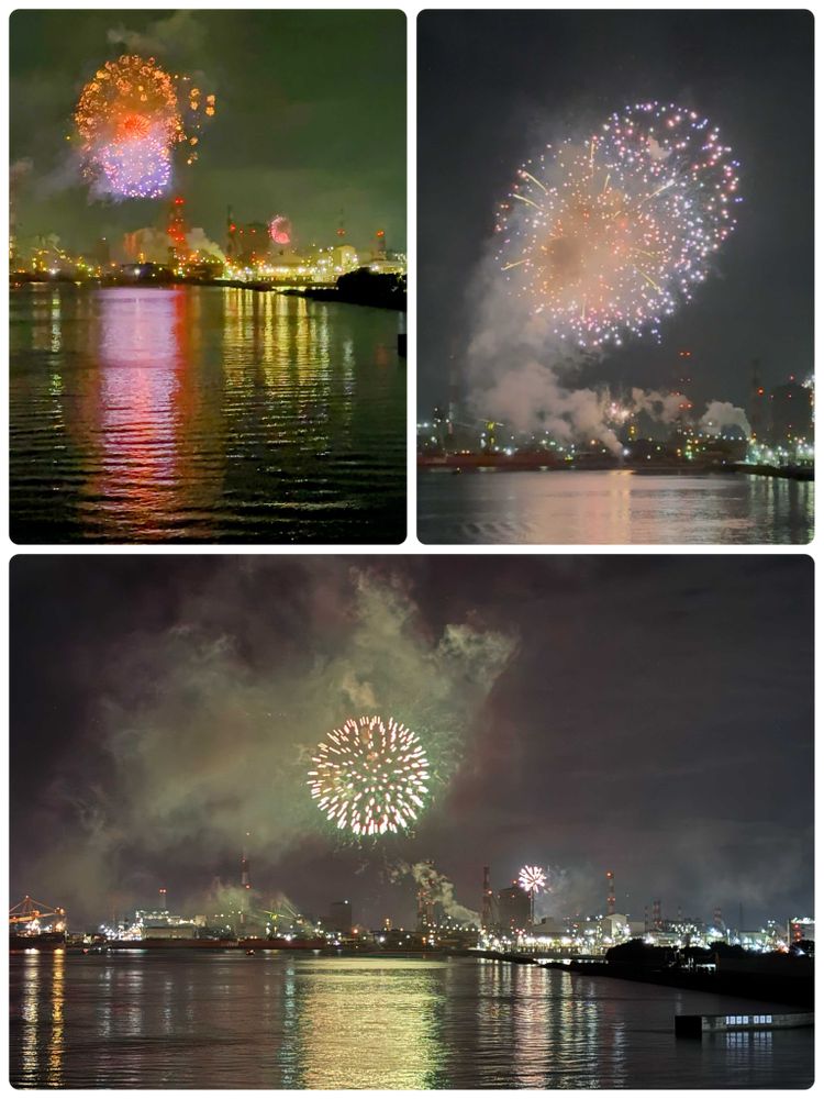 昨夜は隣の市の花火大会があり7ヶ所から分散して15分だけ上がったのですが我が家の近くの海に架かる橋からは4ヶ所の花火を観る事ができ楽しむ事ができました🎆😊