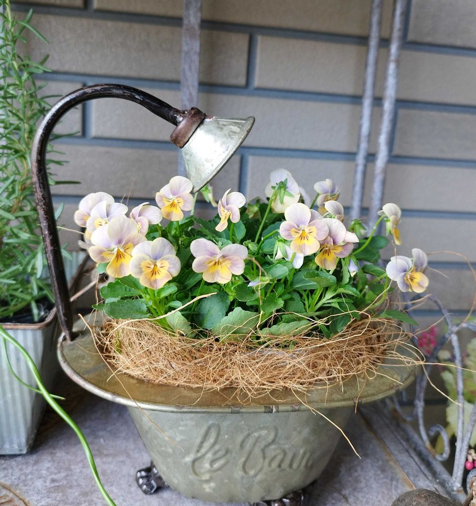 わぁ〜ビオラさんも、ブリキ鉢さんも素敵ですね(*˘︶˘*).。*♡