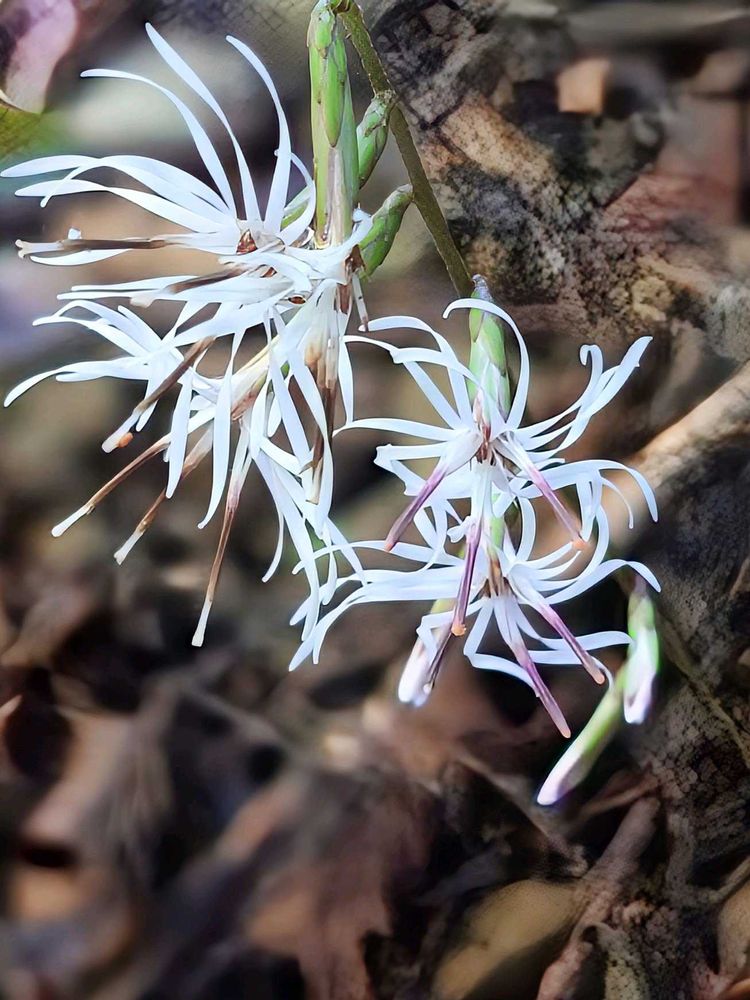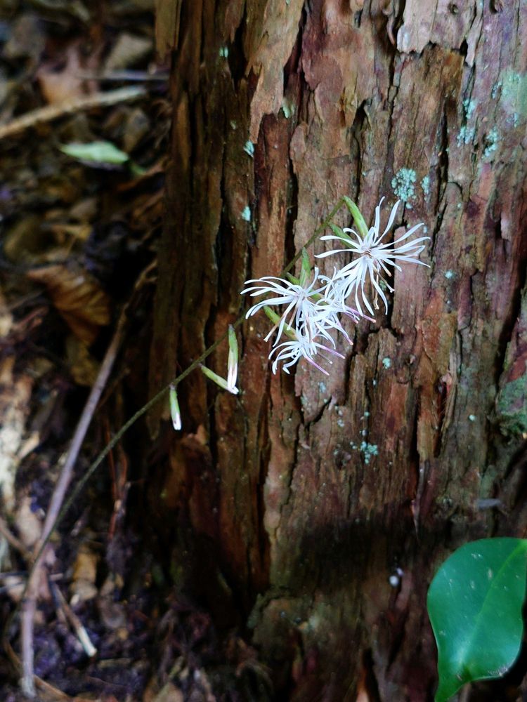 葉っぱは無くて地面から花茎だけが伸びていて、葉っぱが無くても咲くんだぁ!と感動しました
