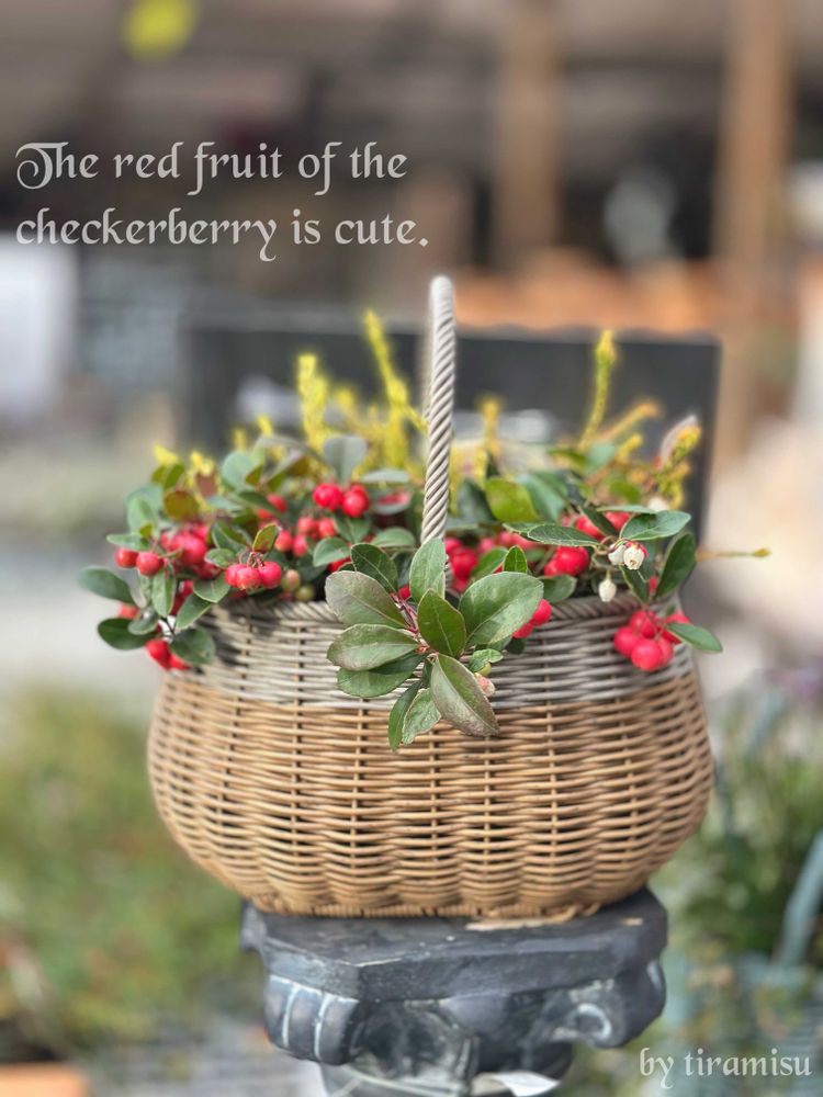 うちにも、こんなかごの鉢があるので、チェッカーベリー買いたい!って手にしたんだけど、友達が「鳥に食べられちゃう」って言うから…やめといたわ💦