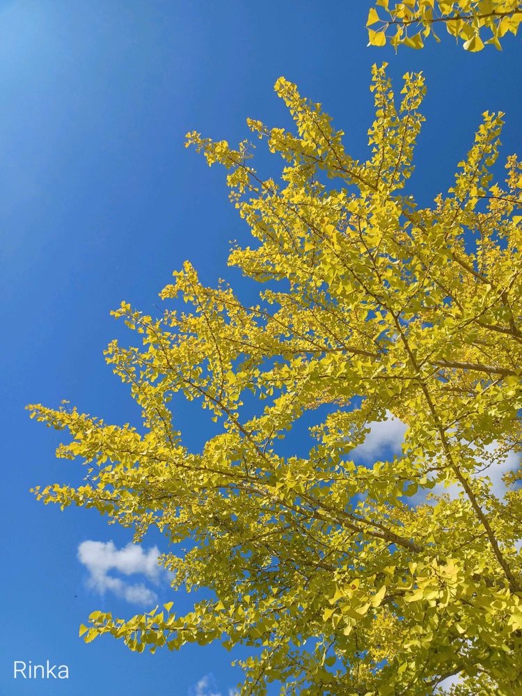 青空に映えるイチョウの木💙💛🩵