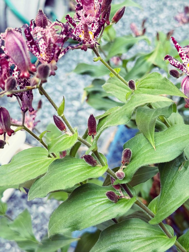 ②③葉腋(葉と茎のまたの部分)から蕾が出ているのでタイワンでない方のホトトギスかな🤔