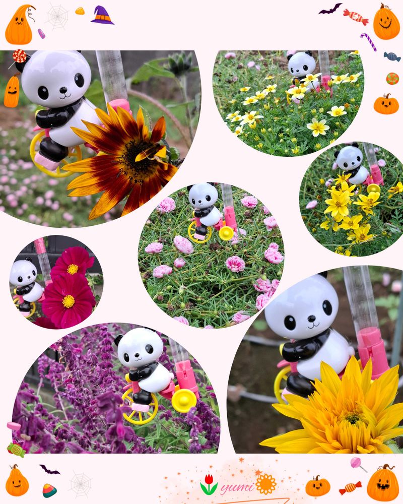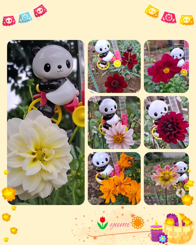 可愛い🐼チャンのお散歩🚲 綺麗なお花にいっぱい会えて幸せ🕊 ͗ ͗〰︎︎♡