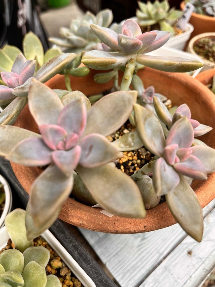 多肉さんたちのオシャレなほんのりピンクは紅葉なのかな?元々の?