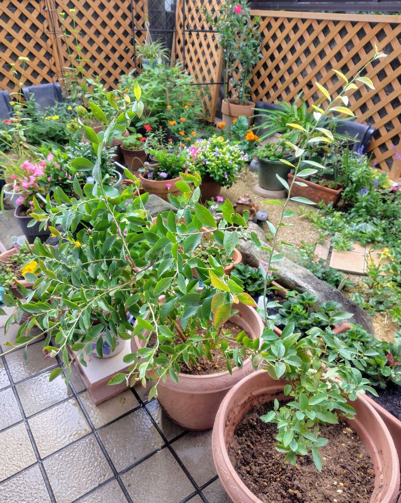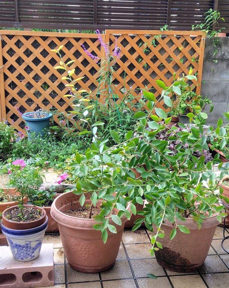 3年前ラビットアイ🐰を2本同じ鉢に植えたまま、カンカン照りの畑に放置🫣。