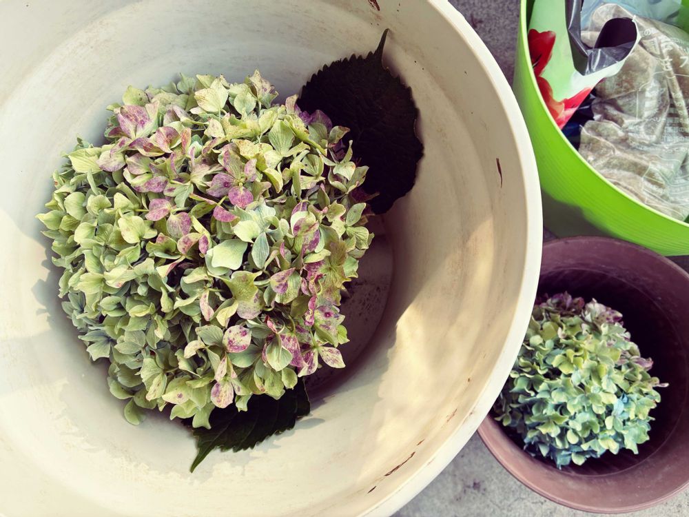 昼から雪が降った札幌ですが、朝は雨降りの寒い中、巨大化した紫陽花をバキバキ剪定✨️