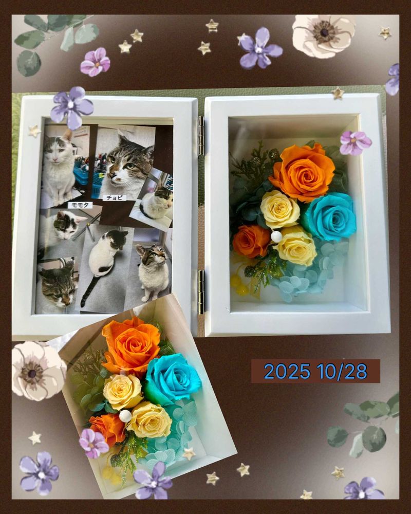 華やかなブリザードフラワーと猫🐱ちゃん、いただいた方は、とても喜ばれだでしょうね😚