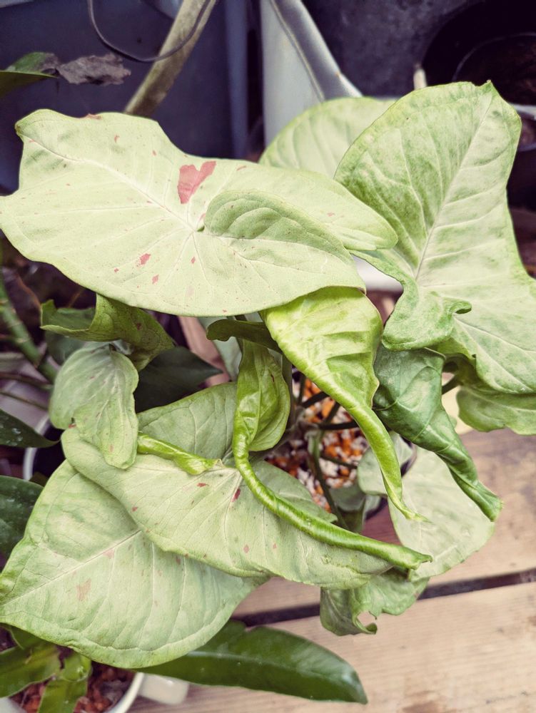 白っぽい葉にピンクのちりばめられた斑が可愛らしい…誰かが名前に似つかず…血痕が…😱って言ってましたね そう言われればそうも…見える🤣