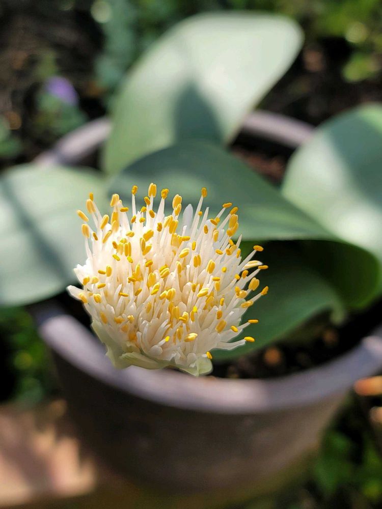 ✽2年程前にご近所さんから頂いた✺マユハケオモト✺に、はじめて花が咲きました✨🤍🌱