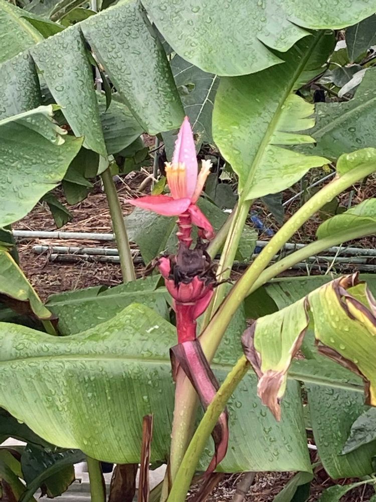 散歩で見かけた家庭菜園の端に植えられた「バナナ」。