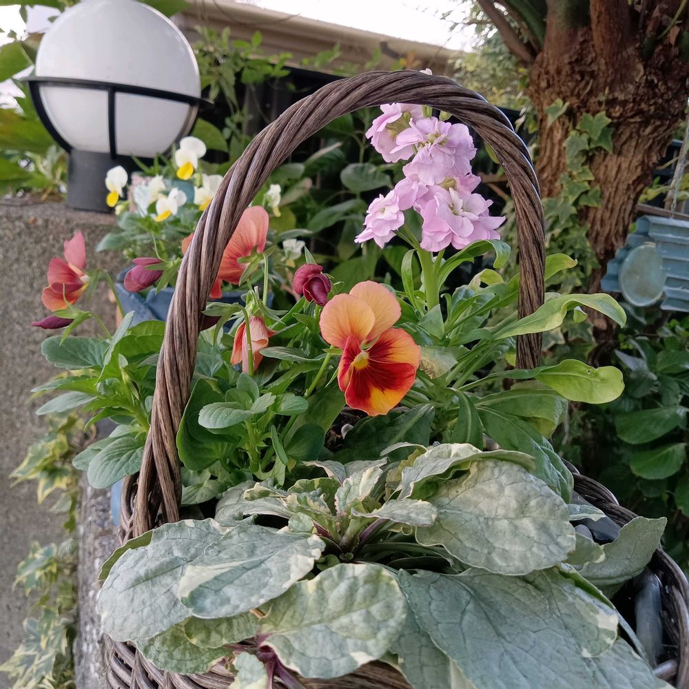 カゴに寄せ植えするとセンス関係なく可愛く見える😅