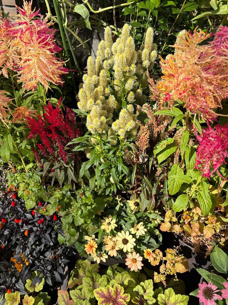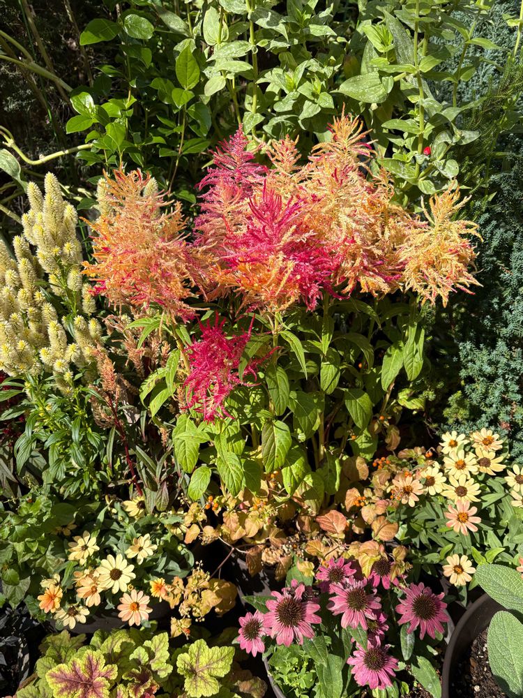 週末の雨で ちょっとボザボサになった 羽毛鶏頭さんだけど…紅葉みたいで可愛いです➰🍂🍁