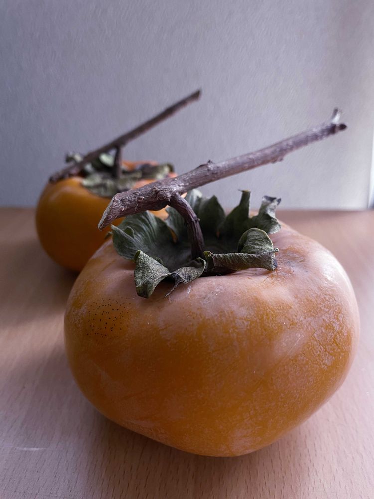 さん、柿は皮ごと食べますよー。静さんもぜひまるかじっていただきたいです。
