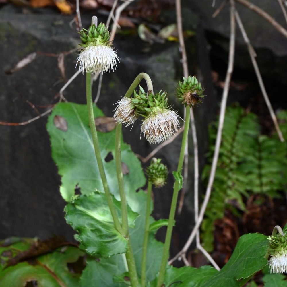 茎の先端に付く頭花の大きさは子供の拳ほど(直径5–10cm)と非常に大きい。