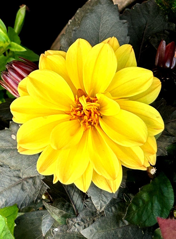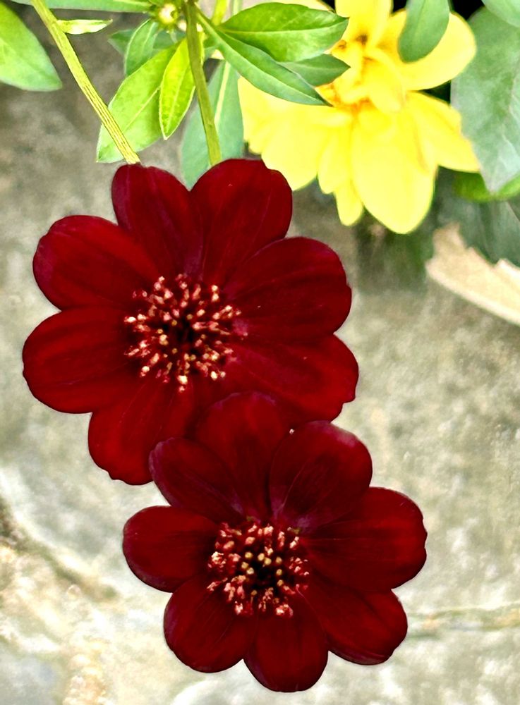 ダリア💛🌿とチョコレートコスモス🤎💜🤎💜🌿
