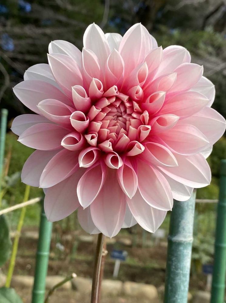 東京都立神代植物公園で出会った、ピンクのグラデーションが素敵なダリア😄