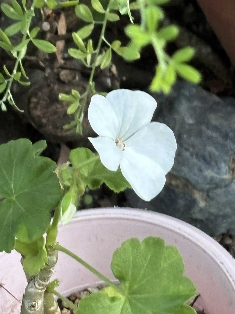 大切にしていた白花のゼラニウム、枯れかかっていたのを剪定したら、何とか元気になり花が咲きました🤍✨