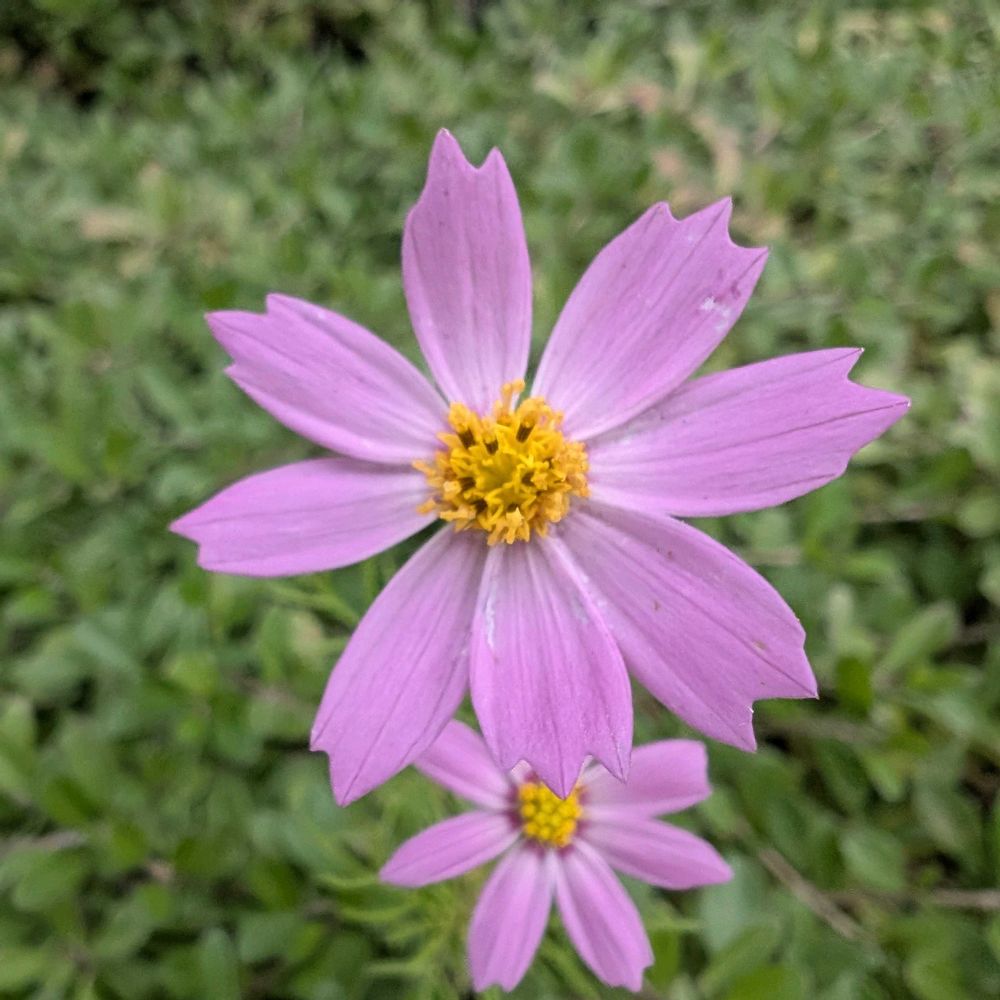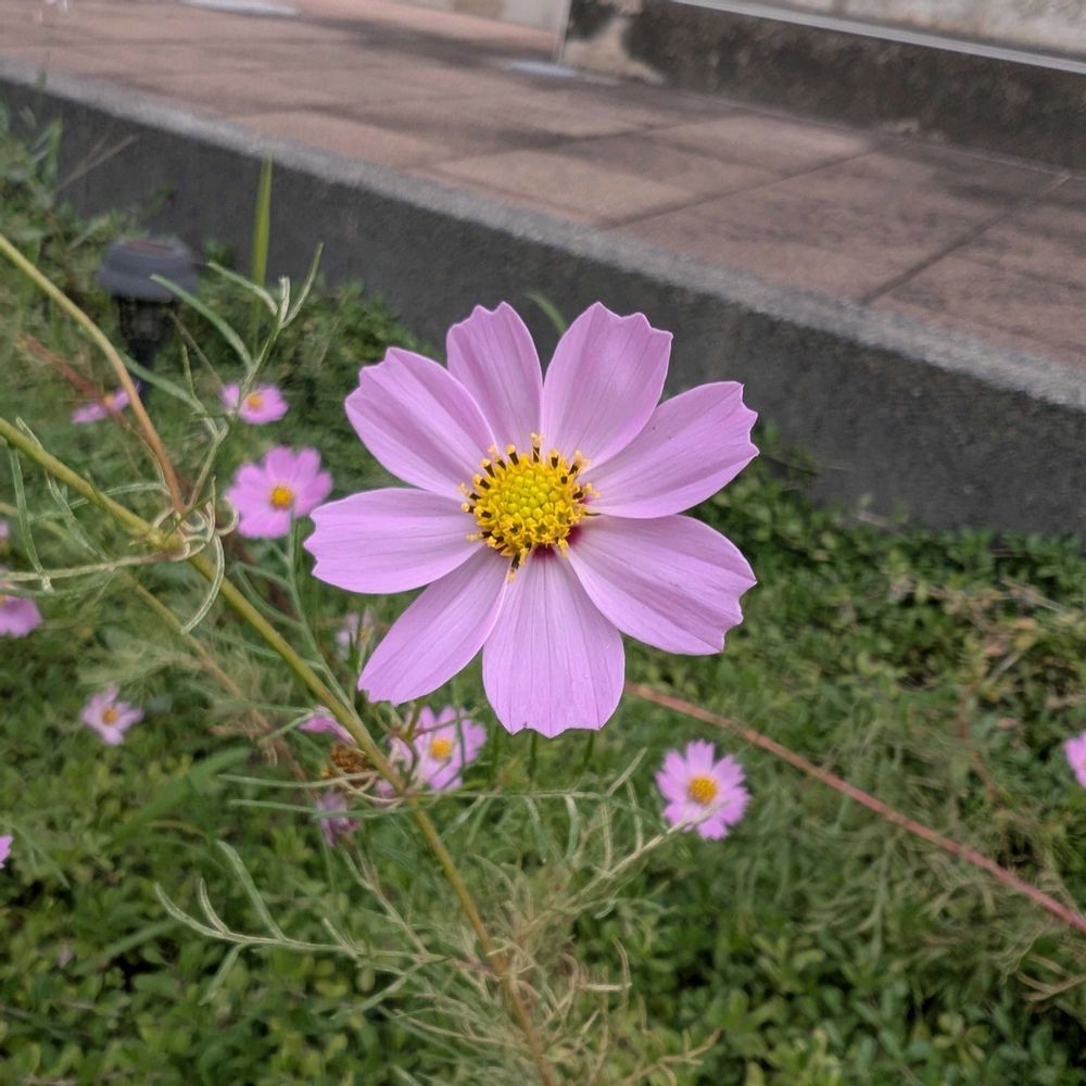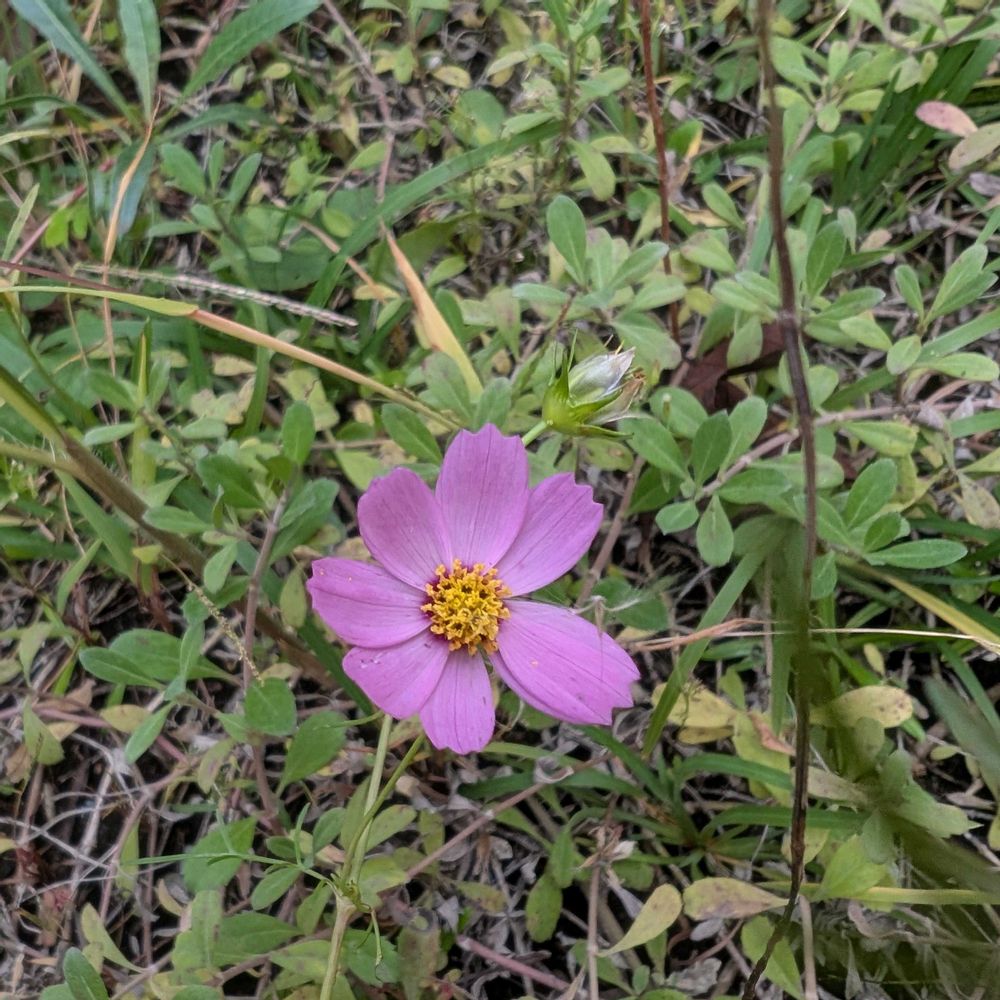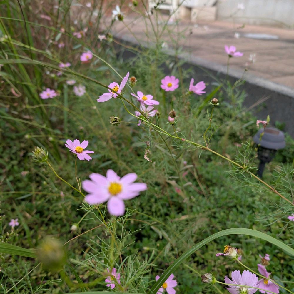 自宅の南側、こぼれ種から生えてきたコスモスです。
