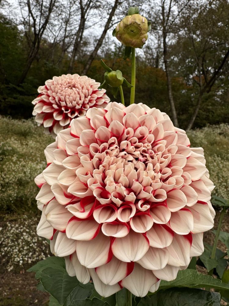 空が泣きべそでもダリアが吹き飛ばしてくれてますねぇ!!!!!!大きくて豪華ずうっと( ꈍᴗꈍ)^_________^見てたい大好きな景色ですよ~😊