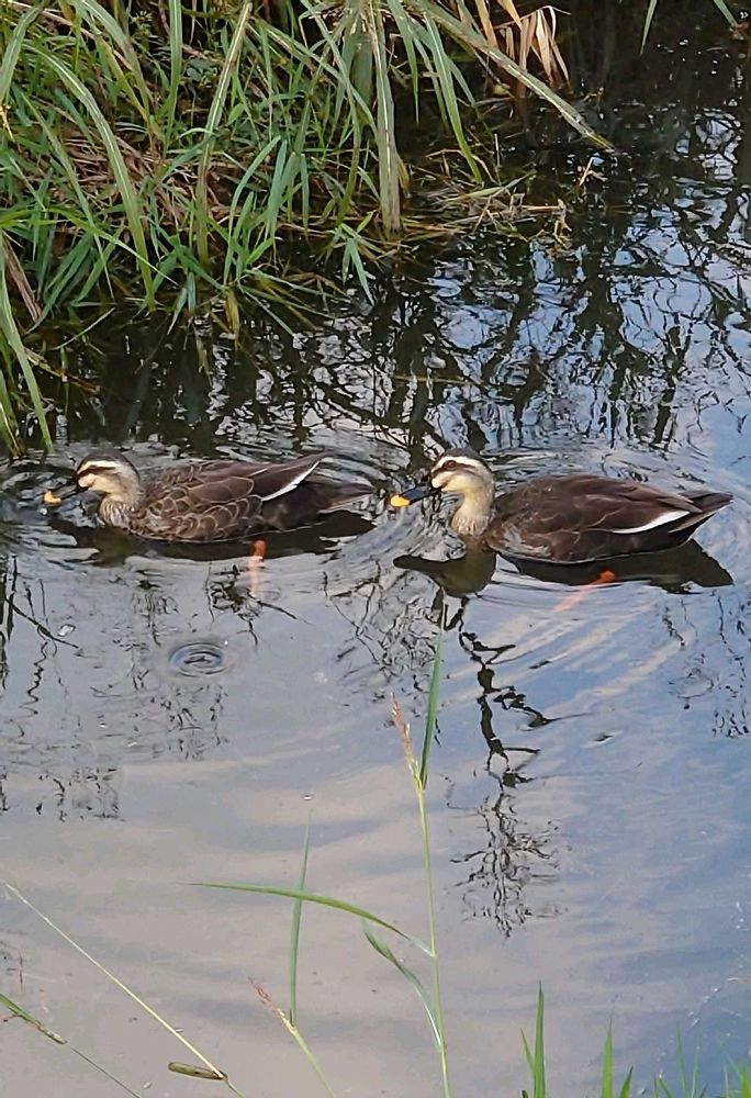 仲よしですが、オシドリではありません。カルガモです🦆🦆😀