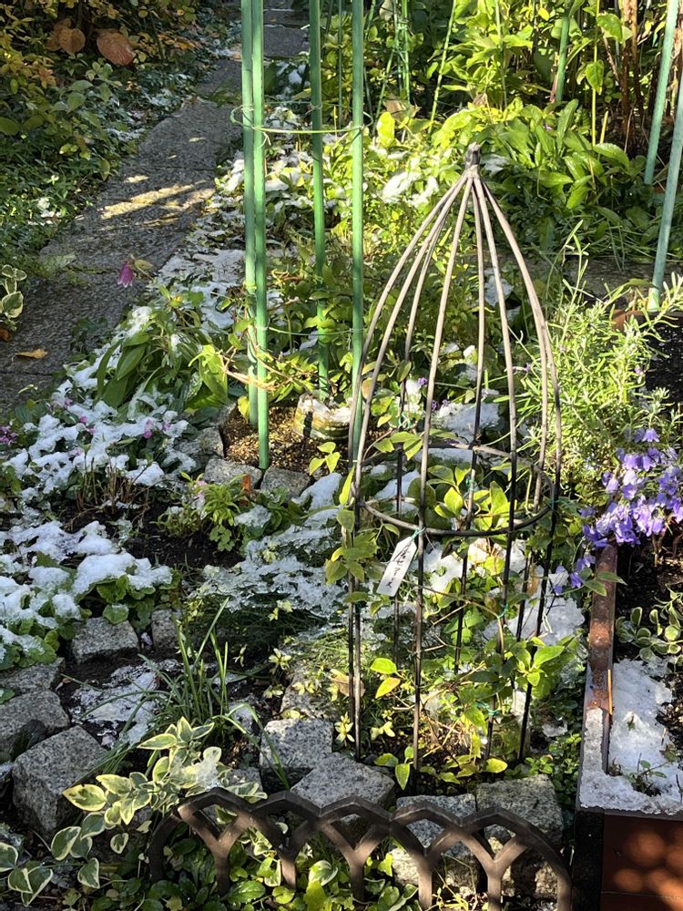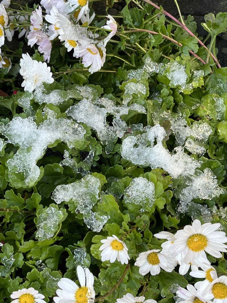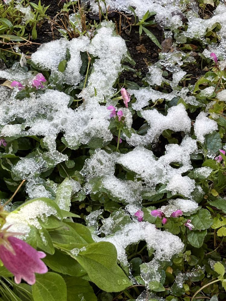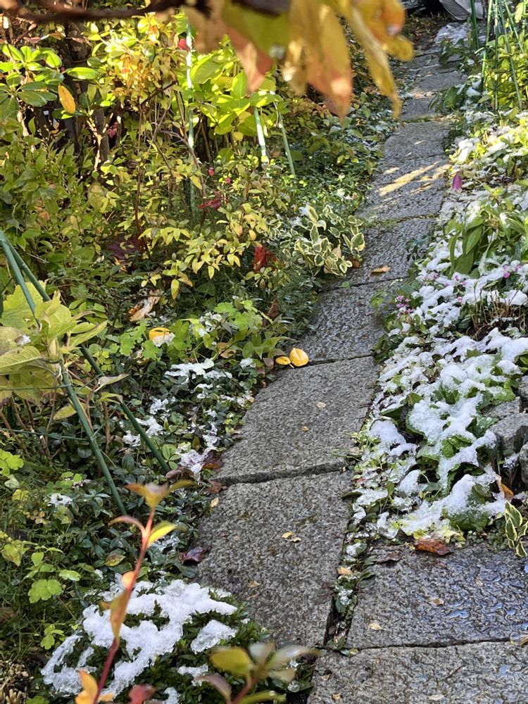 昨夜は冷え込んで雨が雪になり我が家の庭にも初めての積雪 まだ咲いてる花達が寒そう 今日は10度になるのでこの雪も解けるでしょう スライドして下さいね