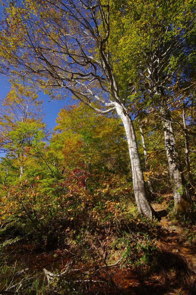 ブナの木の紅葉と木肌が綺麗なので見上げて見れば空が真っ青、隙間から陽射しも入って、素敵な景色が見られました✌🏻