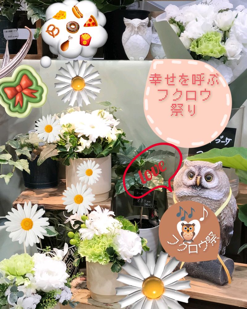 19日㈰松戸からの帰り道、駅のお花屋さんのディスプレイにフクロウ🦉さんが2羽いたのでパチリ