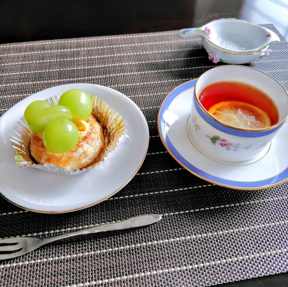 パイにカスタードクリームを塗ってシャインマスカットを飾りました