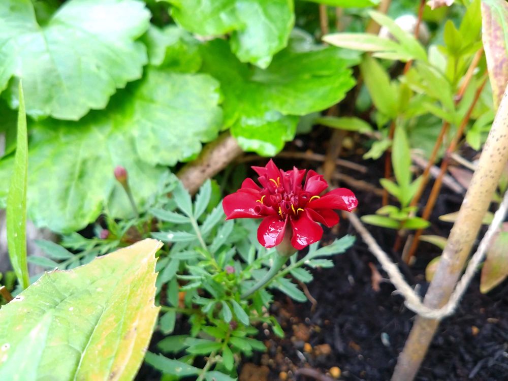 淋しい花壇に紅一点です❤