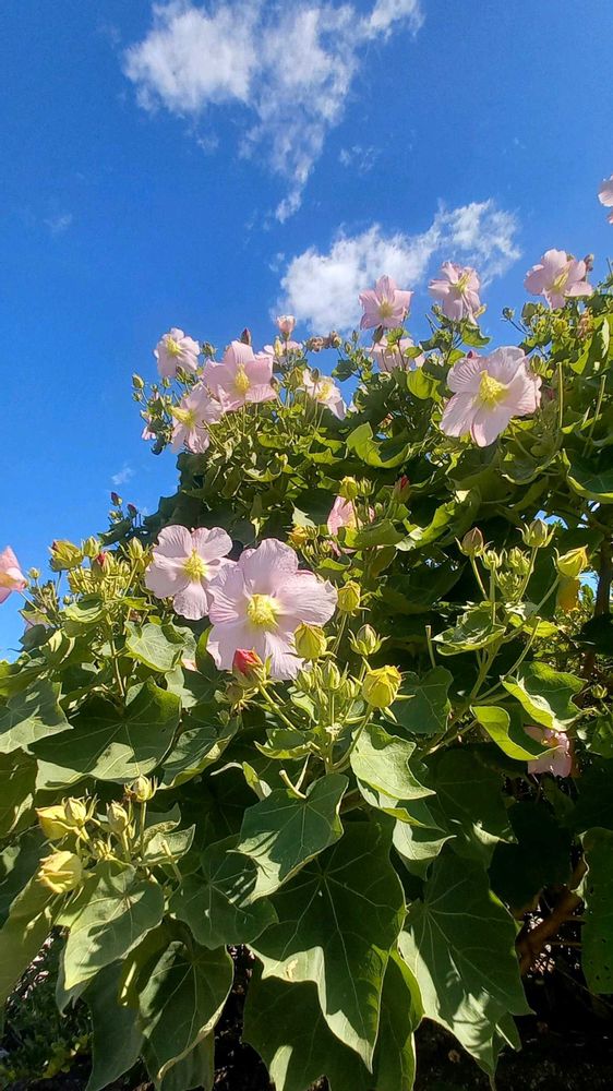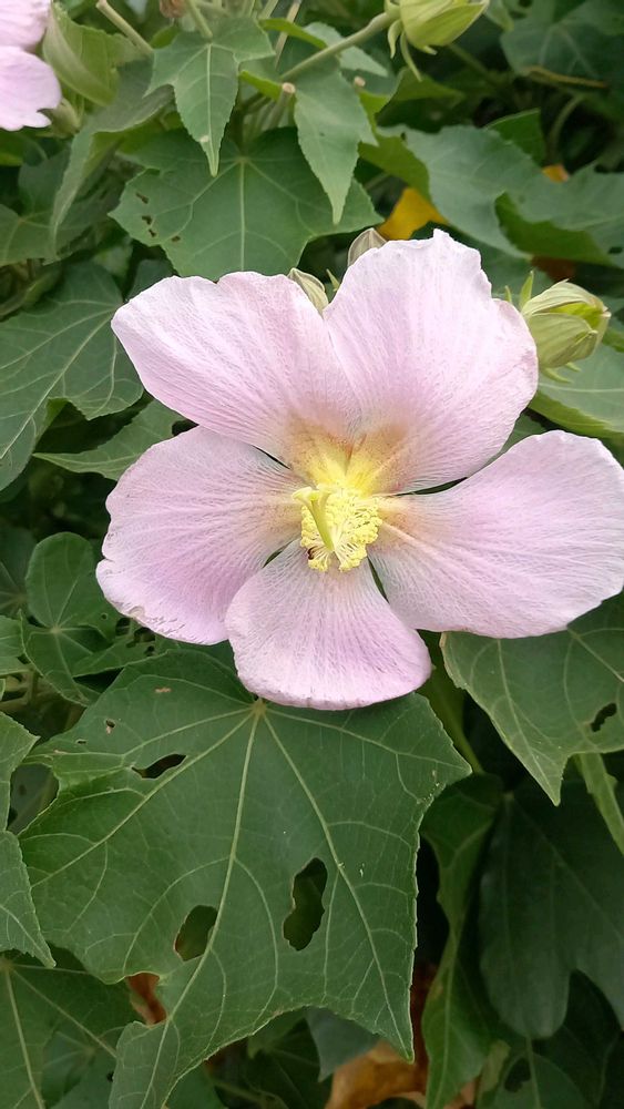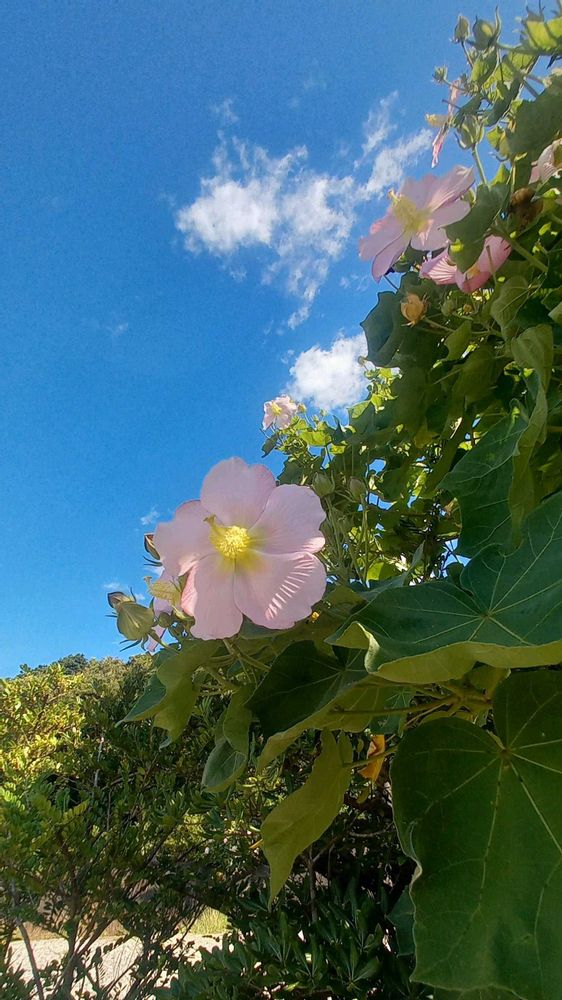 幹線道路沿いにこの薄ピンク色のサキシマフヨウがたくさん咲いていました。