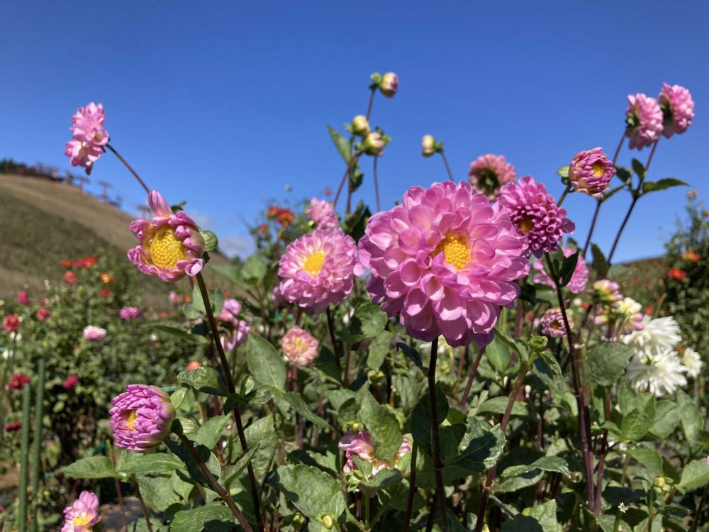 青空の下、箱館山コキアパークに元気に咲くダリアが綺麗でした𓂃𓂂ꕤ*.゚R5.R6 撮影