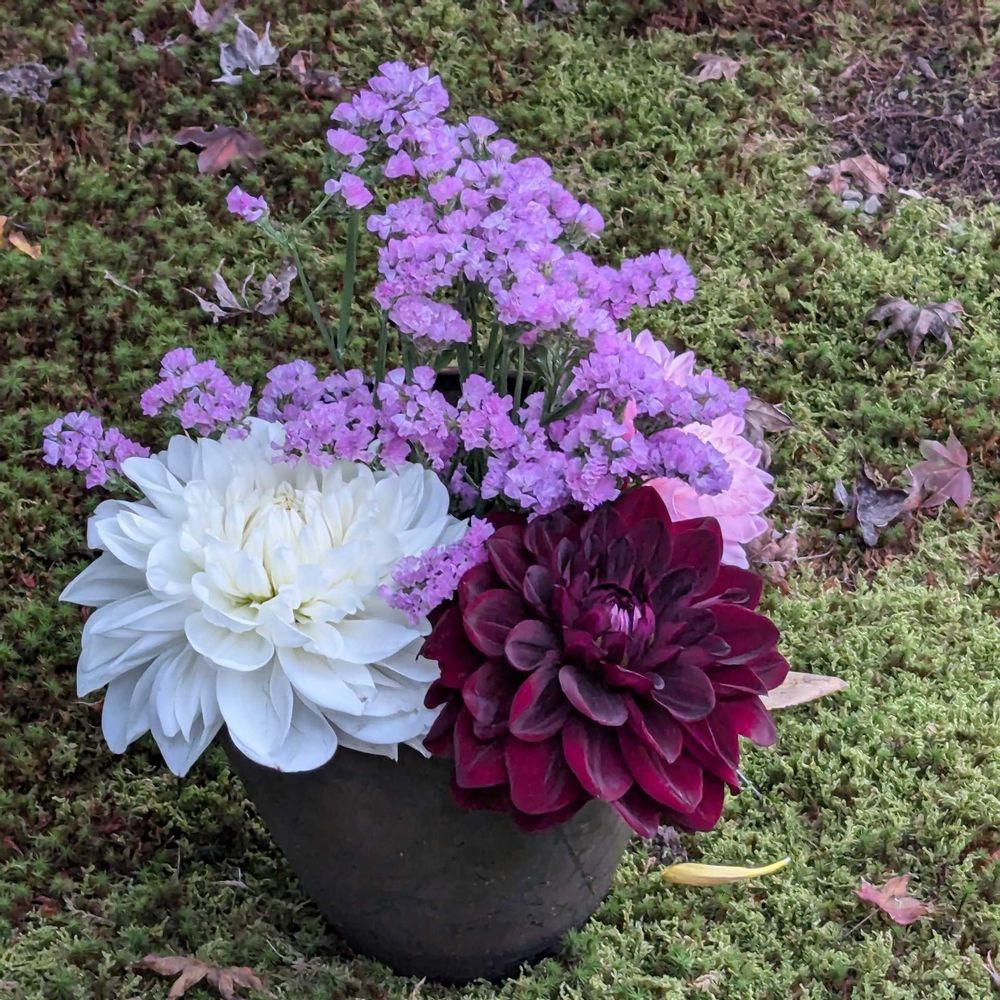 ①〜③昨年11月、東福寺塔頭勝林寺にて撮影の花手水のダリアのお花です🤗💞