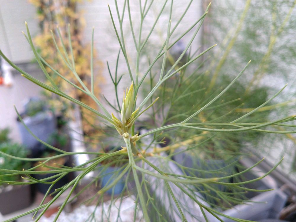 奥に薄ぼんやりうつっている灰色のスリット鉢から、四方八方に枝をのばしています🌿
