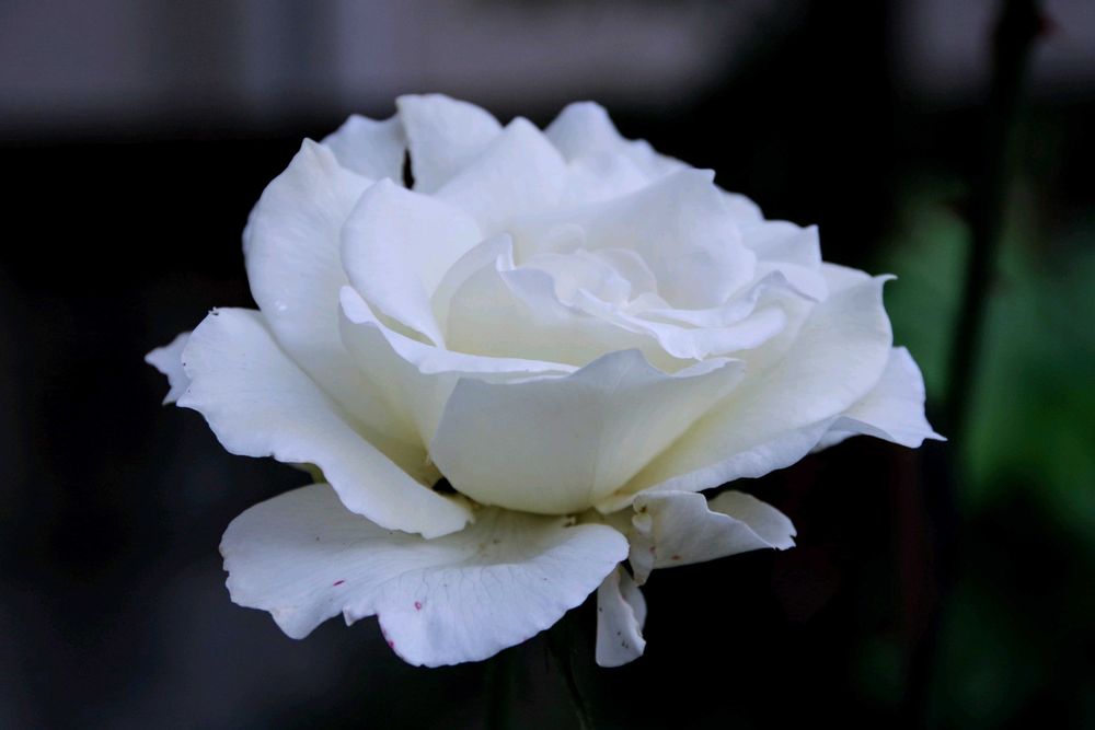 白い薔薇の花は、見慣れた木々の枝が地に戻ってゆくのを、優しくそっと見守るように耀いています☺️🙏
