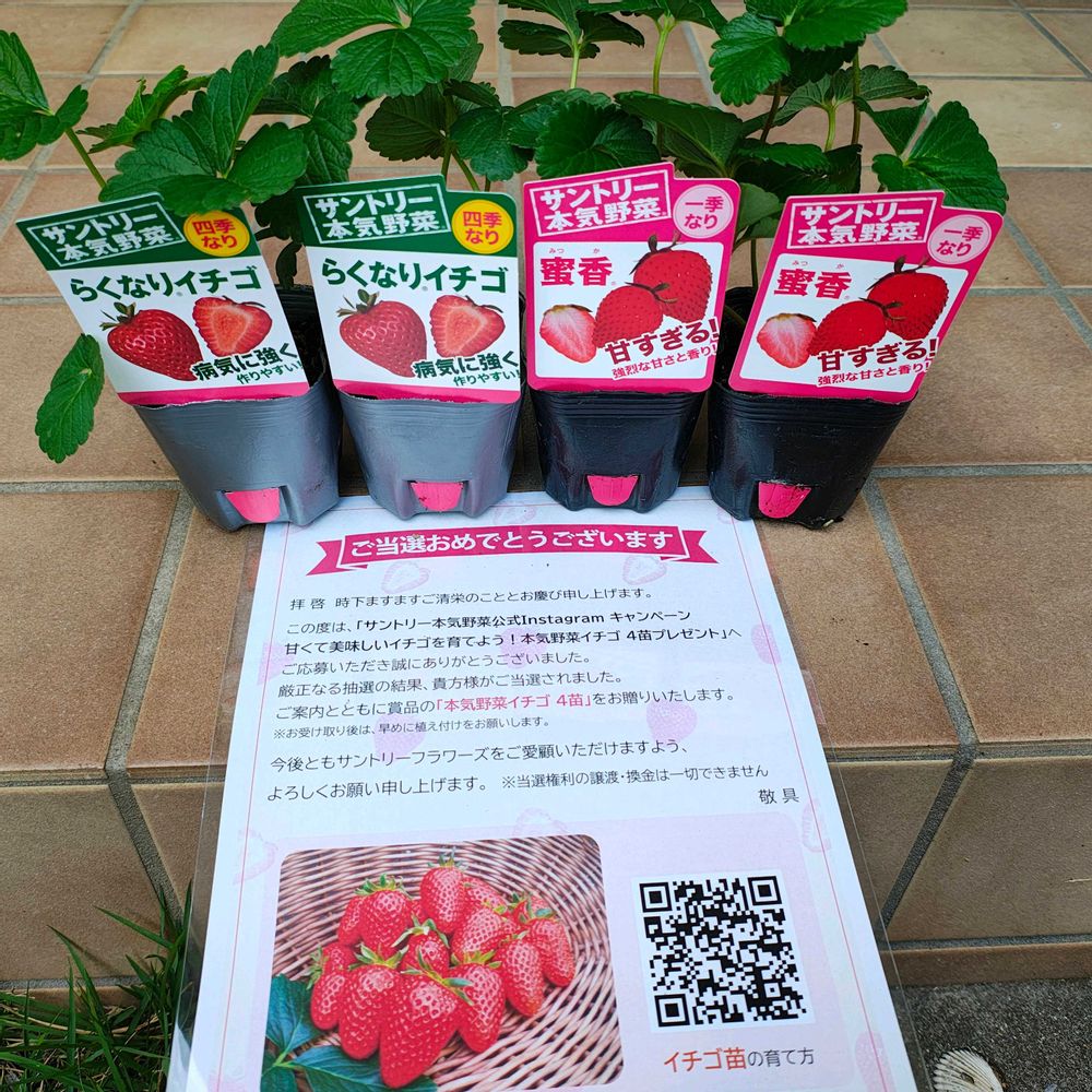 サントリー本気野菜様のInstagramキャンペーン、\イチゴ苗プレゼントキャンペーン🍓/に当選させていただきました😊