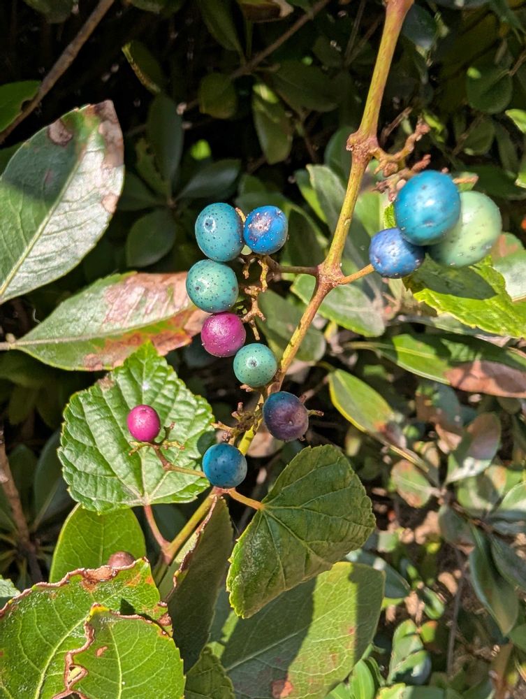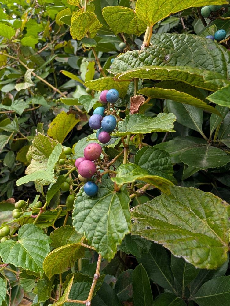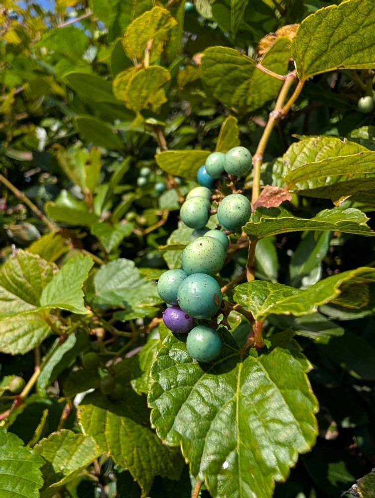 野葡萄🍇カラフルで綺麗ですが、同じ房で違う色になるのは何故でしょうね?この後どうなるのか、観察続けてみますね😉