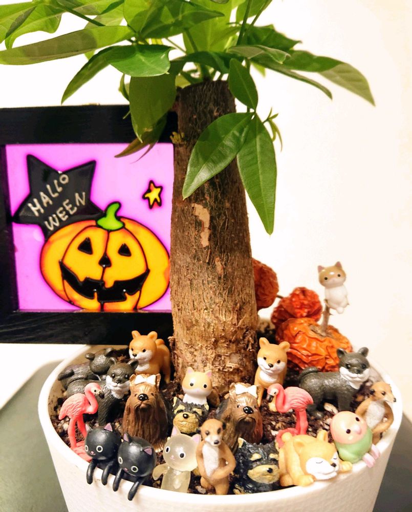 1️⃣パキラの下に動物大集合🐱🐶🐰🐻🦫🐿️🐦🦜🦩🐈🐕🐈⬛