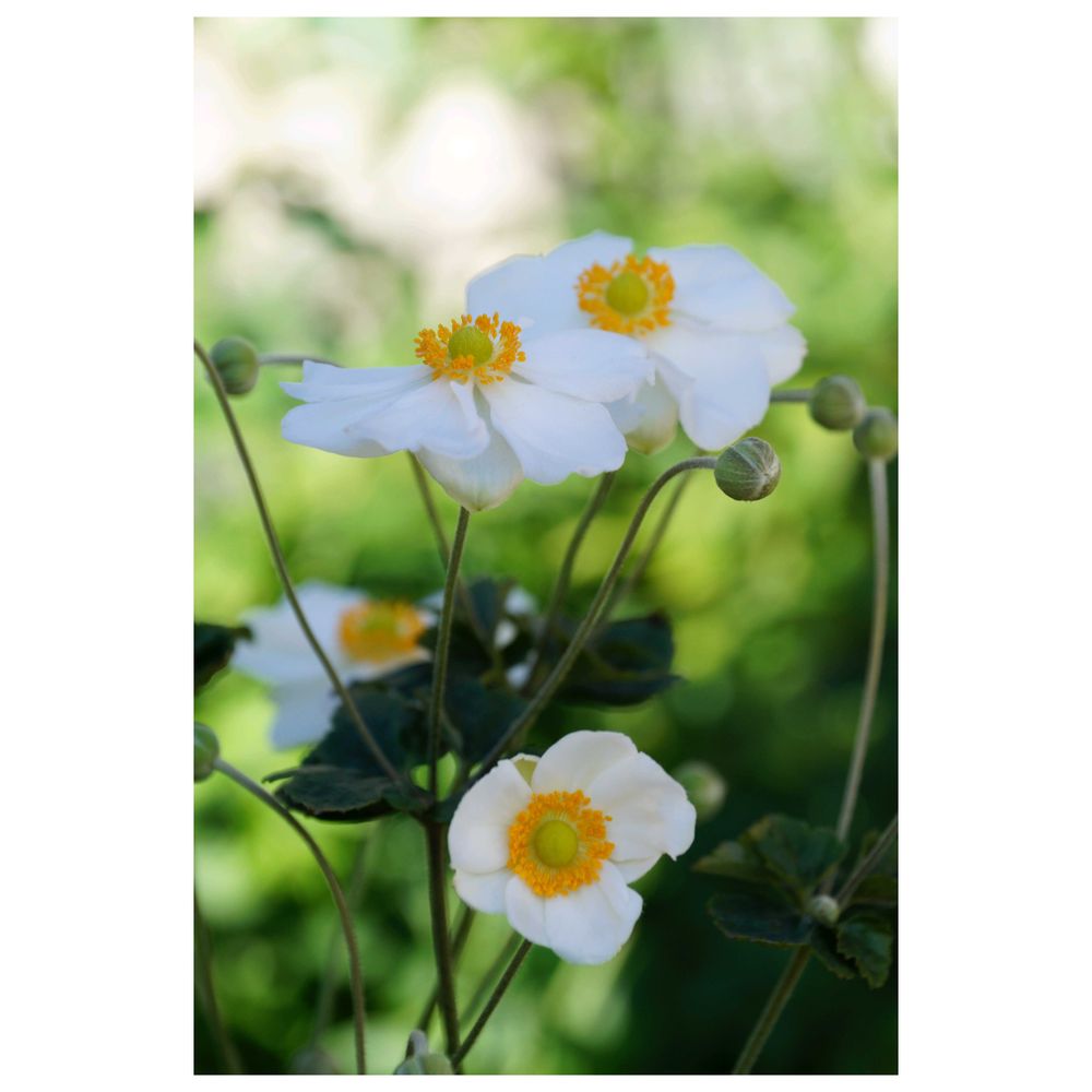固い蕾のまま、なかなか開こうとしなかった母の庭の秋明菊がこのところの急な寒さに応えるかのように次々に咲き始めました。