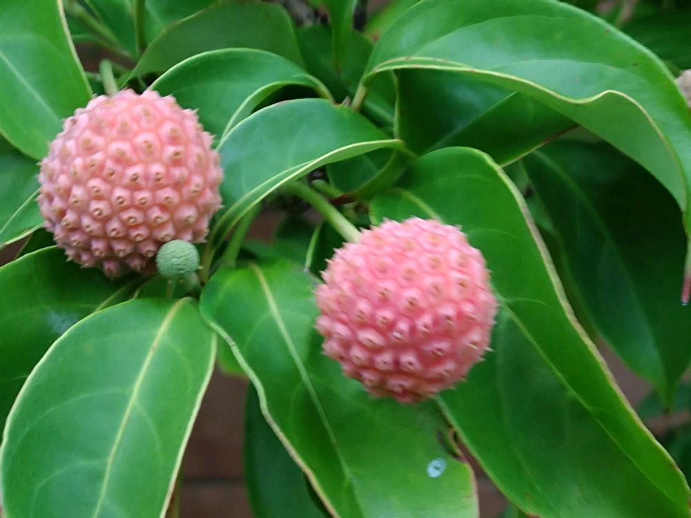 ヤマボウシの実がコロンとあちこちになっていて…とても可愛いです。日の当たる所は真っ赤になっているようです。