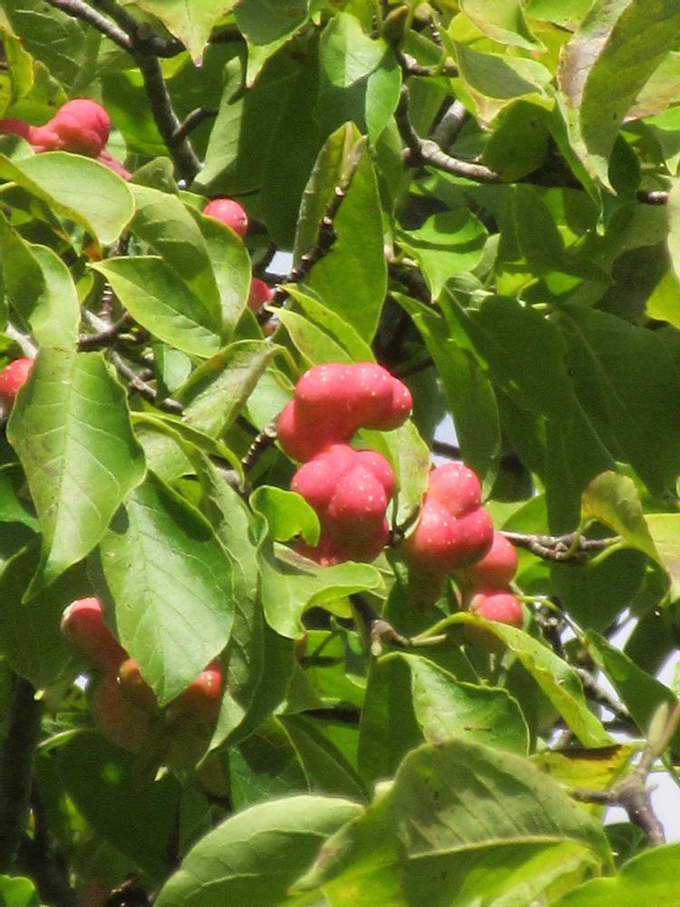 公園で咲いていた金木犀の花と、その隣りのコブシの実。