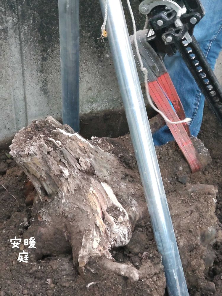 単管パイプで支柱を作って、延べ3日がかりで抜きました。