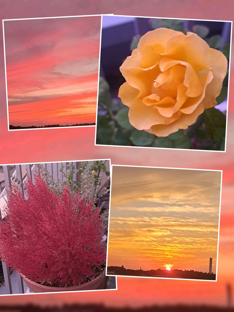 おはよう御座います、夕焼け素敵、北海道は、最近雲が多くて、綺麗なお空、おわすけに⁉️コキアも、真っ赤に染まって綺麗ですね、我が家のは、まばらです。
