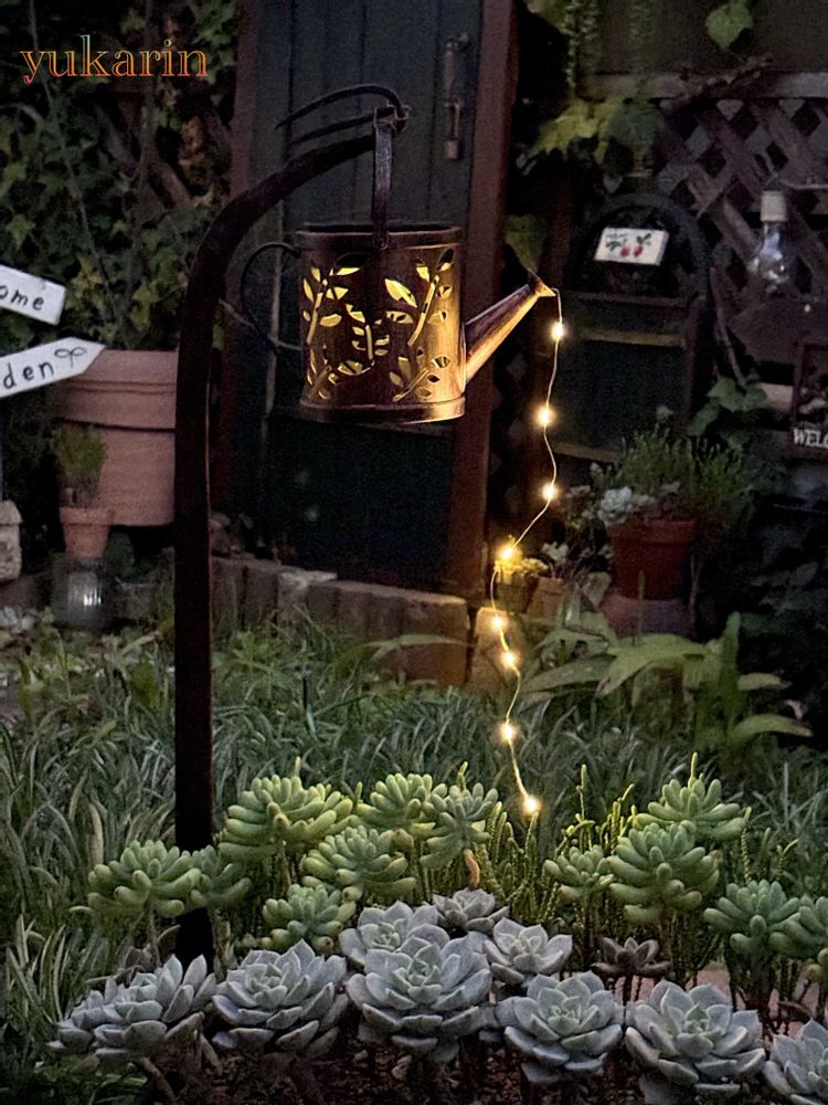 夜になるとたくさんのソーラーライトが光るMyGardenです😅