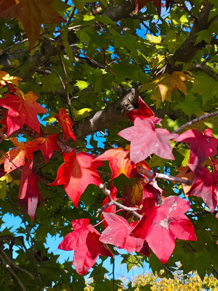 公園のモミジバフウが色づいて来ました。