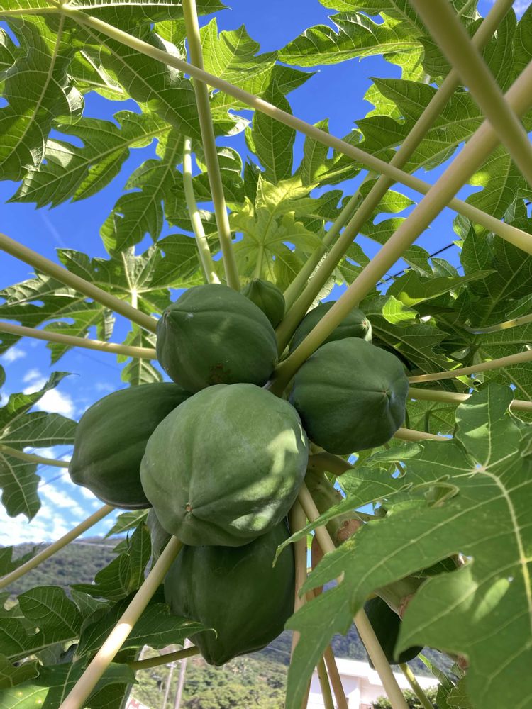 店で見かけることは最近増えてきましたが、実をつけているパパイヤを見るのは初めてでした♪